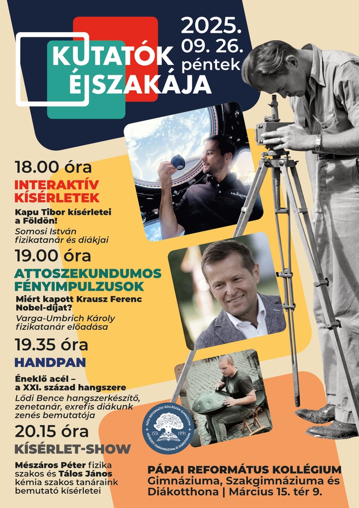 Az ingyenes eseménysorozatot a tudomány és a kutatói életpálya népszerűsítésére hívták életre. A pápai refi idén is csatlakozott a kezdeményezéshez. Szeptember 26-án interaktív kísérletekkel, izgalmas, tudományos előadásokkal várják az érdeklődőket.