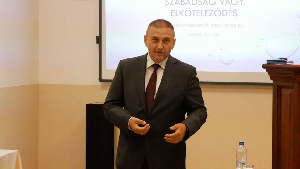 Dr. Balikó Zoltán, a PRTA docense a keresztyén szabadságról, az elköteleződésről értekezett. Világi értelemben az abszolút szabadság egyfajta telhetetlen, kielégíthetetlen érzés. Az elfogadott értelmezés szerint a szabadságnak vannak határai, addig terjedhet, amíg az nem árt másoknak.