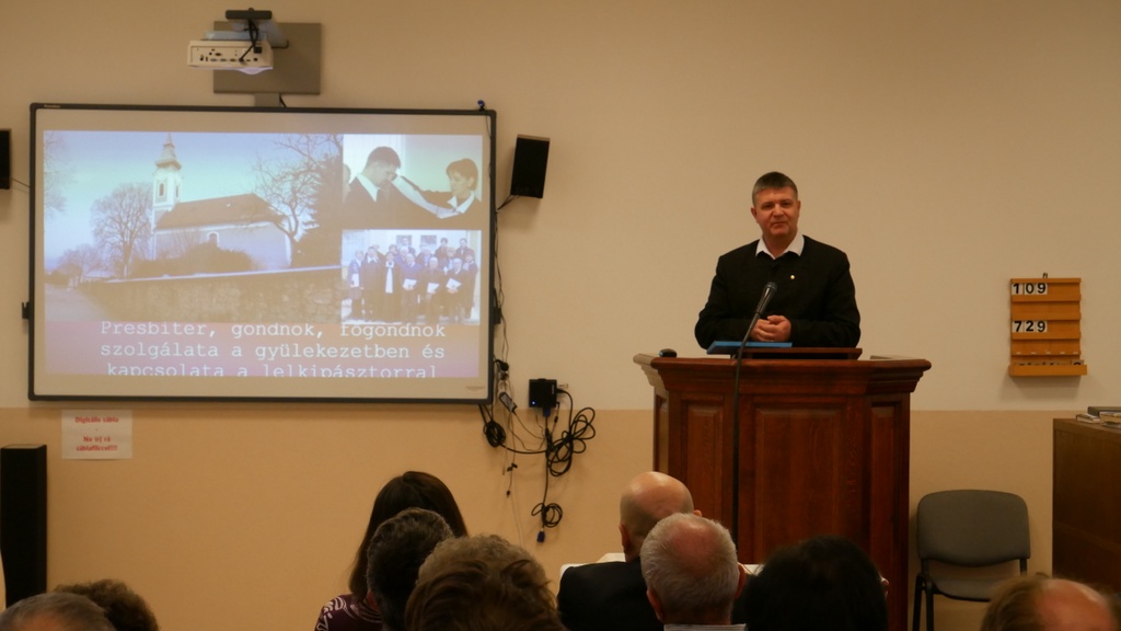 A második Presbiterképzőn is megtelt a teológia előadója. Dr. Kocsev Miklós, a PRTA oktatója előadásában azt hangsúlyozta, hogy a jó presbitérium ösztönző és lendületet adó lehetőség lehet a gyülekezet számára. Mindehhez fontos, hogy az adott presbiterek tisztában legyenek szolgálatukkal, küldetésükkel. Néhány támpontot is megnevezett: önmagunkban tudatosítani a szolgálat lényegét, a képességünkhöz való feladat megválasztása, folyamatosan érlelődni a szolgálatban, és ha eljött az idő, tudni elengedni azt.