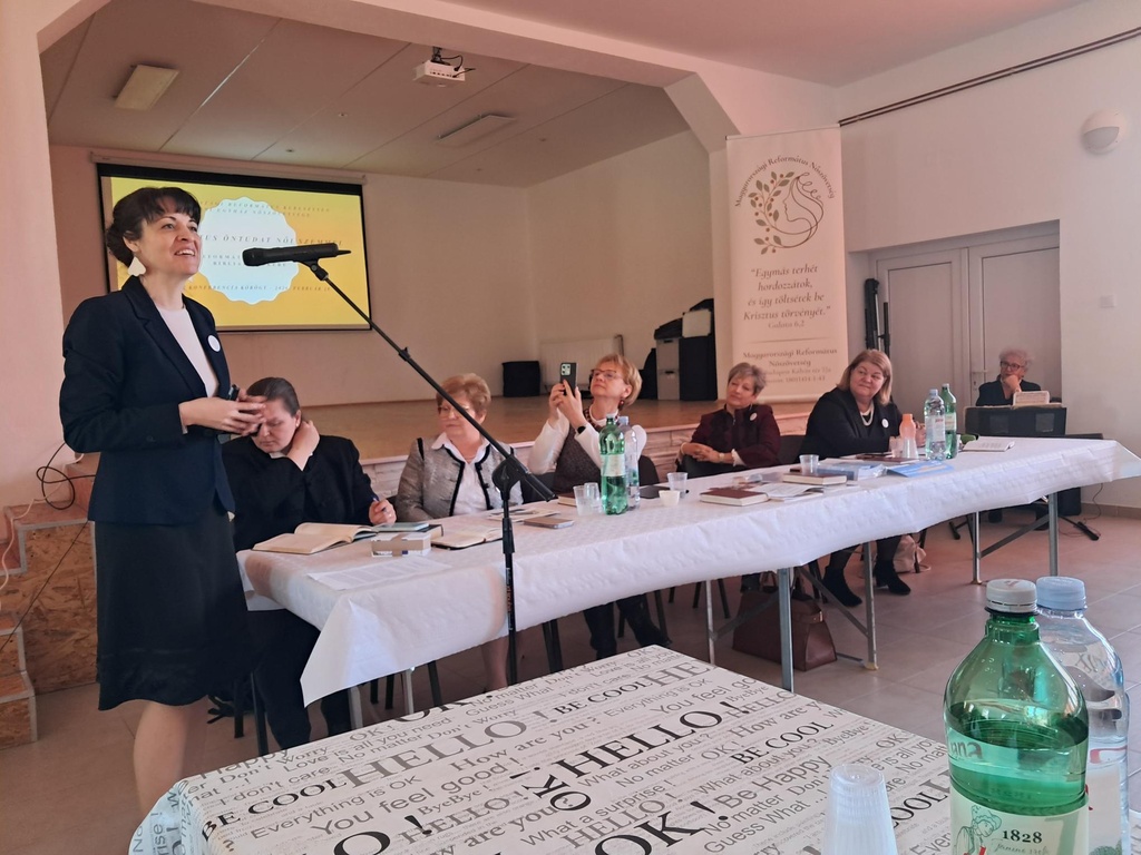 Az első előadást dr. Koncz-Vágási Katalintól, a Magyarországi Református Nőszövetség elnökétől hallhattuk. Előadásában hangsúlyozta, hogy az öntudatos református nő biblikus: egyedüli zsinórmértéke a Szentírás. Ehhez igazodik az élete, ezért rendíthetetlen, kitartó, hűséges és bátor. Ha ezek az értékek a legfontosabbak számunkra, akkor a szívünk Istennél van – és vele együtt a mi kincsünk is.