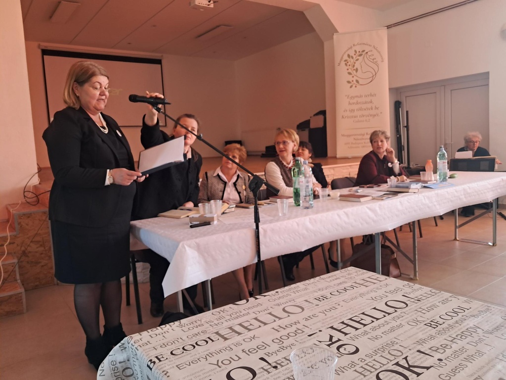 Mayerné Pátkai Tünde, a dunántúli kerület nőszövetségének elnöke arról beszélt, hogy az evangélium szerint reformált nő tisztában van azzal, honnan jön: Isten megváltott és elhívott gyermeke, akinek hivatása van. Ebben a hivatásban szüntelenül meg kell újulnia Isten és az ő igéje által tartott tükörben.