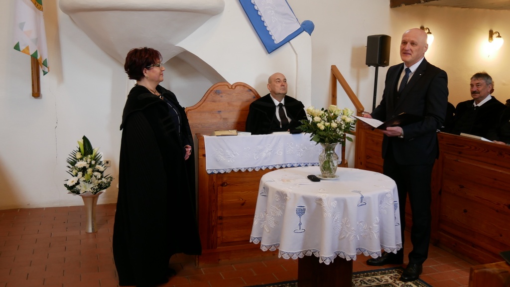 „Van miért hálát adnunk, hiszen egy olyan szolgatársunkat iktatjuk be hivatalába, aki valójában lelkipásztor-polgármester férjével és családjával 28 éve itt van és 20 éve itt szolgál” – mondta Steinbach József püspök hozzátéve, hogy Gállné Medveczky Borbálából mindig árad az Evangélium öröme.