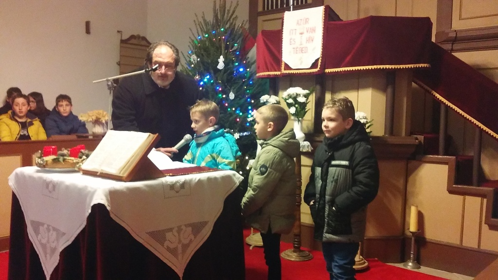 A gyermekeket kis karácsonyi csomaggal örvendeztette meg a gyülekezet.