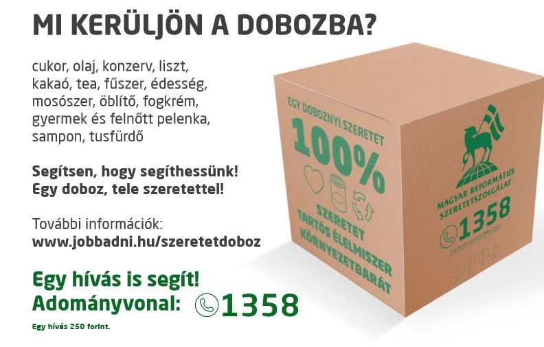 Mindennapi szolgálatunk során több száz családdal találkozunk, akik segítségért fordulnak hozzánk. „Egy doboznyi szeretet” reményt jelenthet a túléléshez és örömöt a nélkülözések közepette. Csatlakozzon Ön is kezdeményezésünkhöz, segítsen, hogy minél több rászorulónak segíthessünk élelmiszerrel!