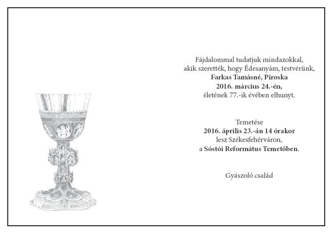 A gyászoló család életére Isten vigasztalását kérjük!