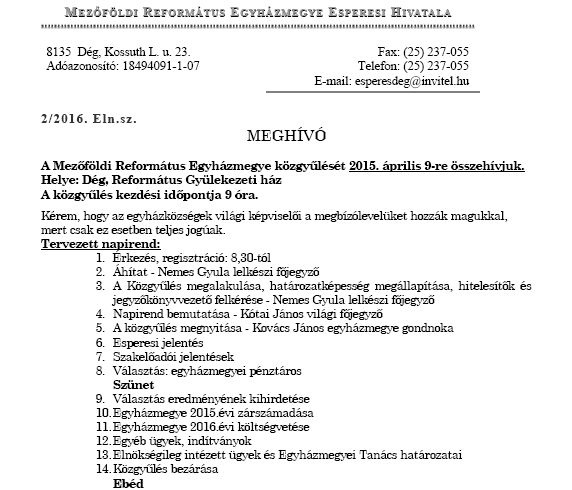 melyet 2016. április 5-én / kedden / 9.00 órai kezdettel tartunk