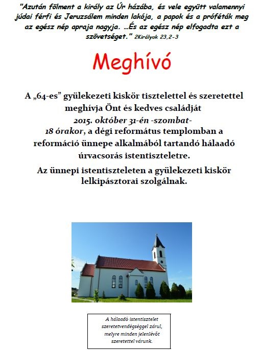 Szeretettel hívlak Benneteket novemberi lelkészértekezletünkre,