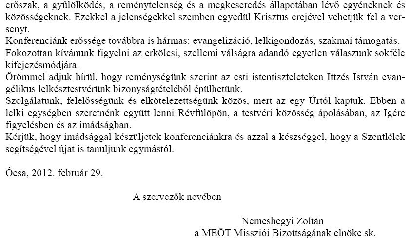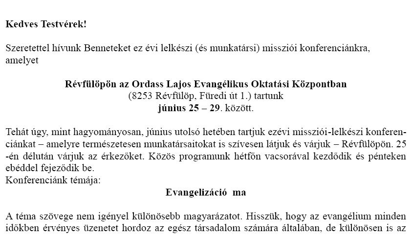 A Mezőföldi Református Egyházmegye lelkipásztorainak, gondnokainak, presbitereinek, gyülekezeteinkben élő testvéreinknek és minden olvasónak Krisztus szabadító kegyelmében gazdag Mennybemenetel ünnepet kívánunk.