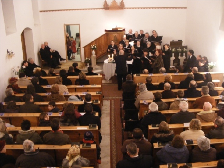 Azután Dinnyés József énekművész úr következett. Régi énekeket, zsoltárokat adott elő gitárkísérettel. Az ismert zsoltárok énekléséhez mi is csatlakoztunk.