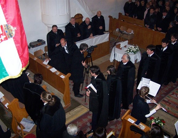 Az istentisztelet kezdetén a palástos lelkészek vonultak be
