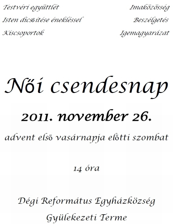Szeretettel hívlak Benneteket novemberi lelkészértekezletünkre,
