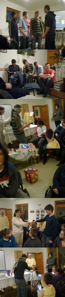 Mire odaértünk, a ház tele volt fiatalokkal, akik mind izgatottan várták a programokat. Először néhány dalt énekeltünk, amit fuvola, gitár és szintetizátor kísért. Ezt követően egy előadást hallgattunk meg, mely az igazi értékekről szólt. Ez nagyon érdekes volt, mindenkit magával ragadott. Ezután egy színdarabot láttunk, melynek tanulsága az volt, hogy nem a pénz és a szerencse a fontos, hanem az, hogy a Biblia tanítása szerint éljünk. Ezután kisebb csoportokban megismerkedtünk egymással, és megpróbáltuk összegyűjteni egymás értékeit. A nap végén egy izgalmas játékot játszottunk, melynek címe Bátorság és kérdés. Csoportokba alakultunk, egy nagy dobókockával dobtunk és különböző érdekes feladatokat kaptunk, pl.: kártyavárépítés, éneklés, tejszínhab-etetés.