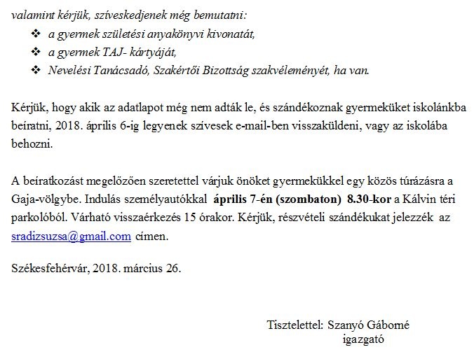 melyet 2018. április 3-án / kedden / 9.00 órai kezdettel tartunk