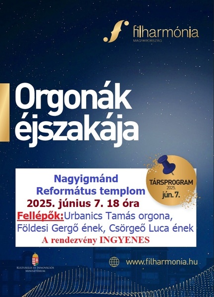 2025. december 14-én, Advent 3. vasárnapján 16.00-tól az etei ref. templomban Vadász Attila orgonahangversenyét hallgathatják meg az érdeklődők.