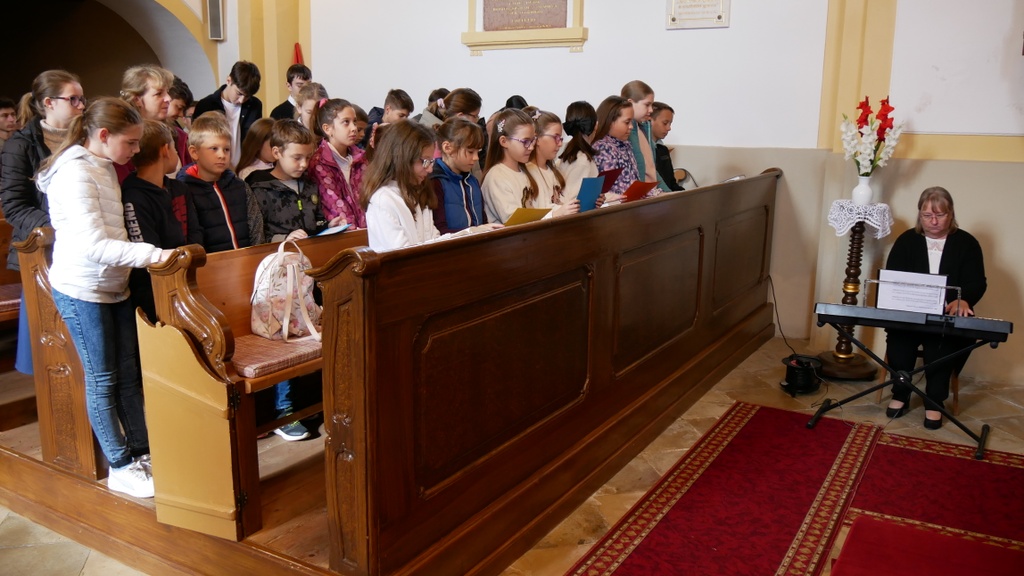 Az ünnepi alkalmon énekszolgálattal vettek részt a hittanosok, a cserkészek, Veresné Petrőcz Mária, orgonán kísért Koós Anita orgonaművész.