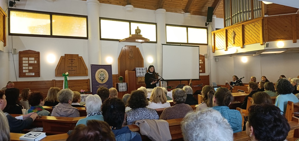Mayerné Pátkai Tünde elnökasszony reflexiói után Dobi Dóra bemutatta a debreceni egyetemen működő nőszövetség életét. Különösen is kedves apróságnak tartom, hogy az ige körüli elcsendesedés, imádság, beszélgetés, tésztakészítés, idősotthoni látogatások, közös sütések, gyülekezeti és nőszövetségi találkozók, meseterápiás együttléteken túl még apró legációs ajándékokat is készítenek, melyeket átadnak a gyülekezetnek ill. a lelkipásztoroknak az ünnepi követek. Hallhattunk az egyetemi disznótoros előtti pogácsasütésről a berekfürdői ill. a debreceni egységnapi szolgálatról is. Mindezeket fotók illusztrálták, melyek jókedvet, fiatalos lendületet és az aktivitások örömét árasztották.