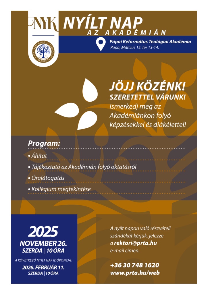 DTRE Kommunikációs Szolgálat, 2026-01-30 08:27:54A Pápai Református Teológiai Akadémia február 11-én ismét nyílt nap várja az érdeklődőket 10 órától.