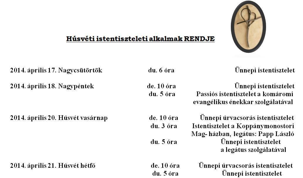 Húsvét Ünnepi istentiszteletek rendje 2014. ( 118.9 KB )