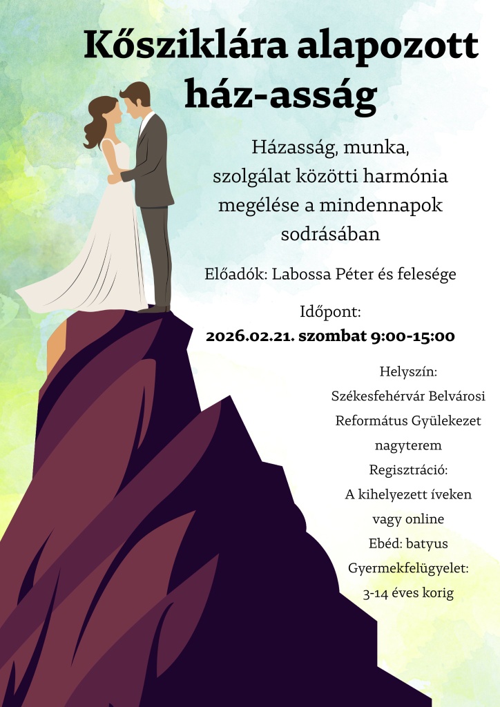 Kősziklára alapozott ház-asság - Házasság heti csendesnap Székesfehérváron a Belvárosi gyülekezetben 2026.február 21-én 10 órakor