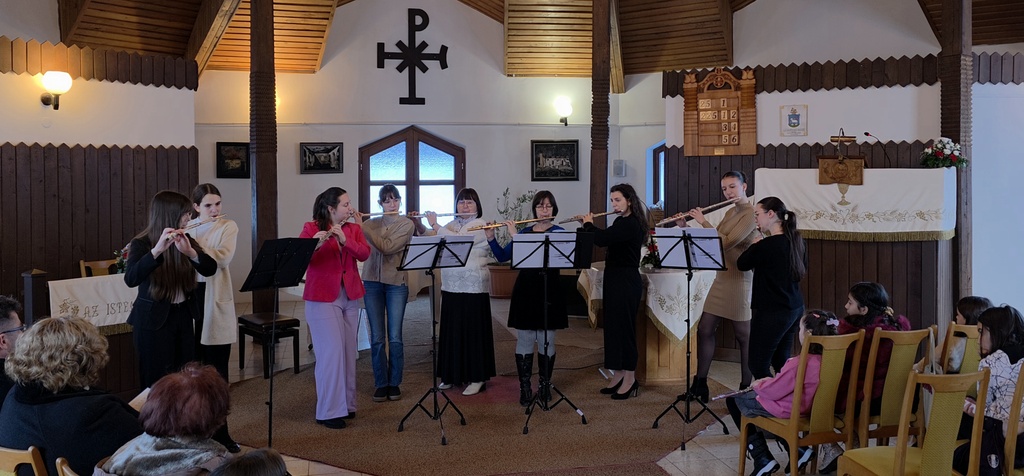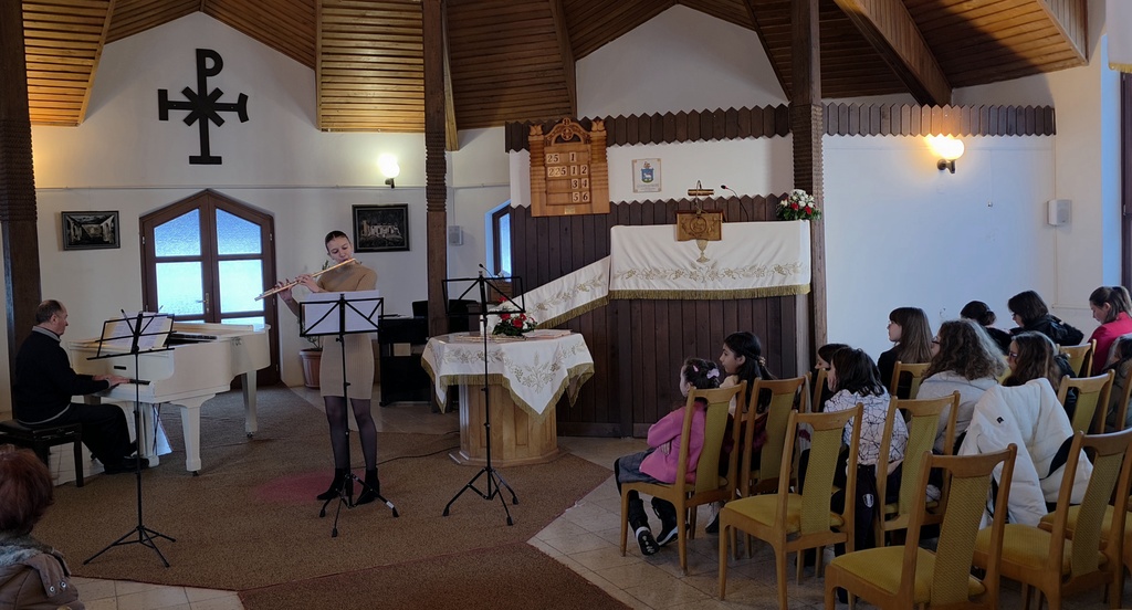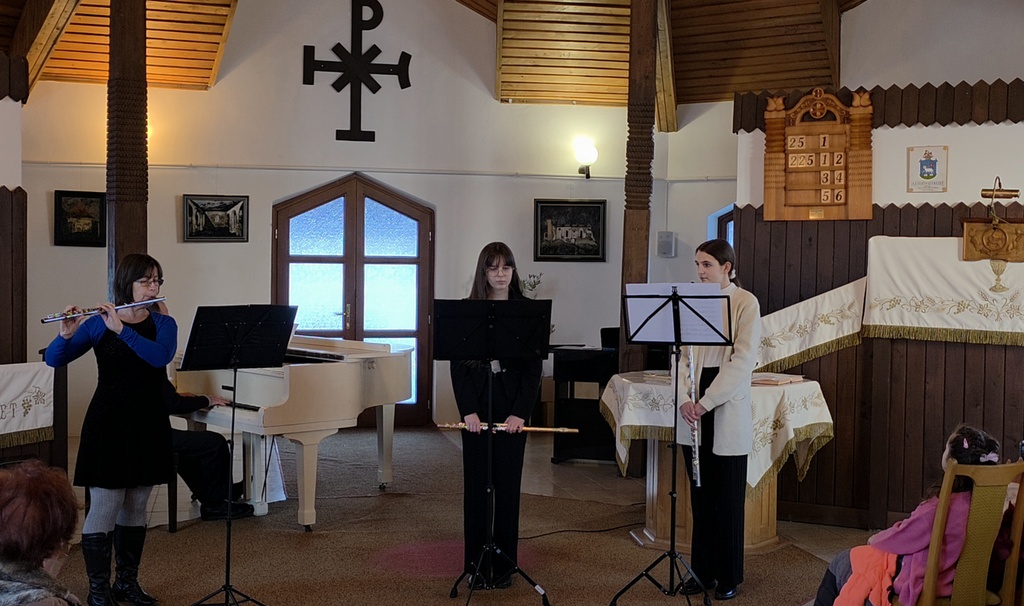 Fuvolásaink félévi hangversenyére 2026. január 17-én került sor Nagybajomban, a Református templomban.