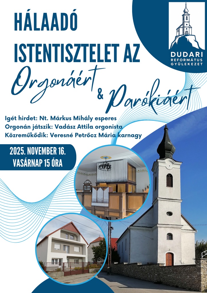 Hálaadó istentisztelet az orgonáért és parókiáért Dudaron