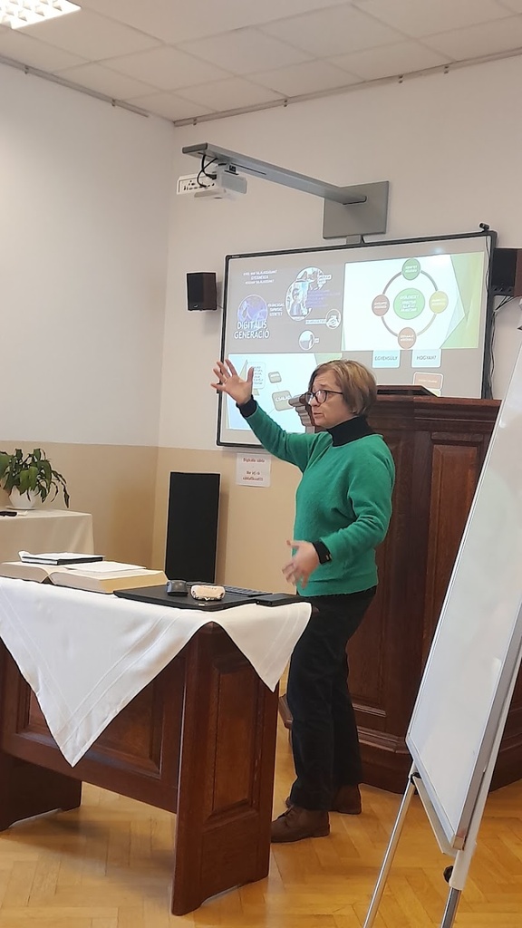 Az áhítat után Dr. Balla Ibolya rektor asszony mutatta be a PRTA katechetikai képzéseit, valamint betekintést adott a 2026 őszén induló új képzésekbe is, amelyek fontos és hiánypótló lehetőségeket kínálnak a dunántúli református hitoktatók számára.