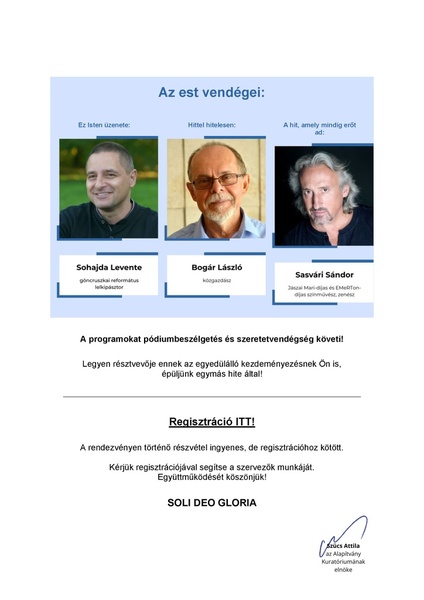 A 2025. október 26-án 15.00-kor kezdődő egyházmegyei reformációi istentiszteleten a az igehirdetés után előadás hangzik el, az ünneplő gyülekezet pedig első alkalommal úrvacsorai közösségben is részt vesz. Az istentisztelet plakátja ide kattintva érhető el.