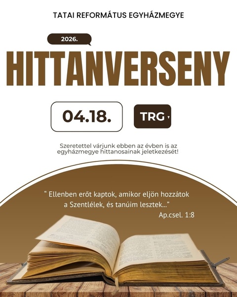 2026. április 18-án szombaton a Tatai Református Gimnáziumba.